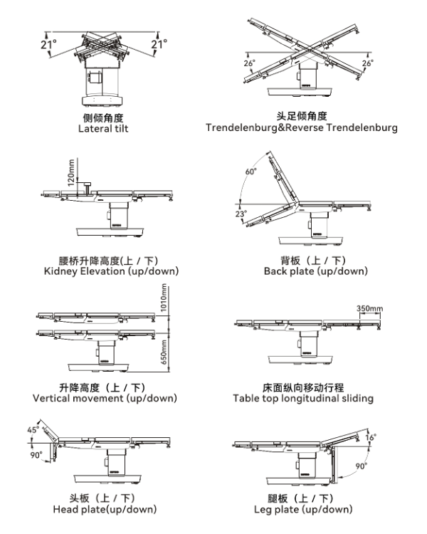 The operating table adopts the micro-motor with electric gear mesh mechanism structure insted of the traditional hydraulic transmission. No need to change oil termly and worry about the problem of leak oil.